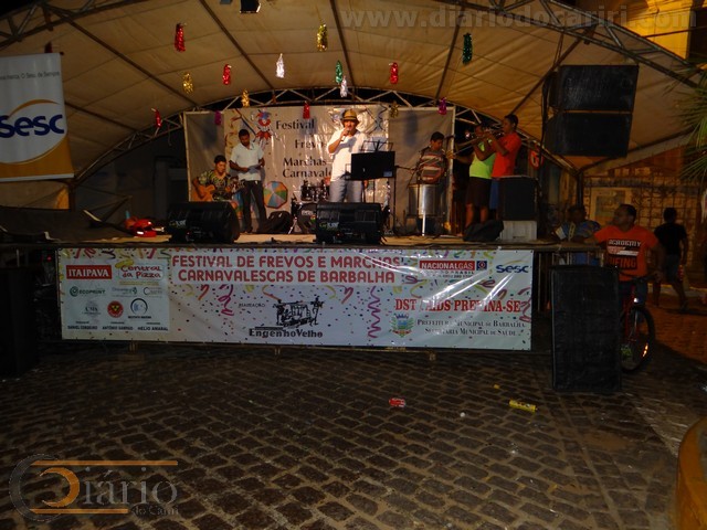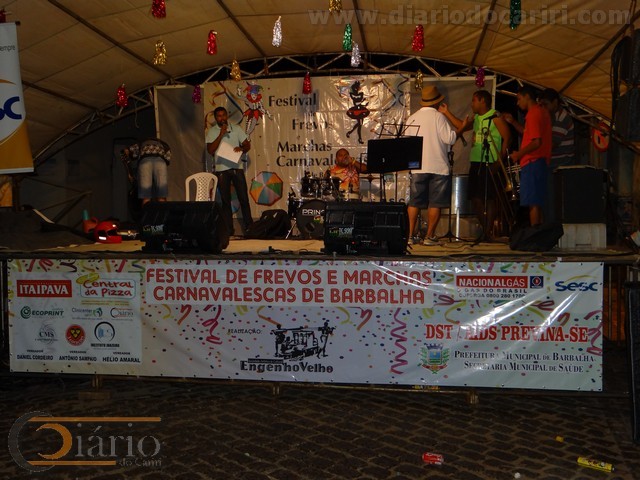 PC (esq) vencedor do festival recebendo a premiação Fotos: Joel Freitas/diariodocariri No período da noite do sábado passado, dia 14 de fevereiro, o IV Festival de Frevos e Marchas Carnavalescas de Barbalha, abriu alas para toda a programação momina até a terça-feira de carnaval, no palco ao lado da Praça Filgueira Sampaio (antigo calçadão), onze frevos foram apresentados pelos seus interpretes, disputando uma premiação geral de R$ 4.000,00 Logo depois das apresentações dos artistas musicais, os concorrentes a premiação esperaram com muita ansiedade os resultados da comissão julgadora composta por três barbalhenses, Nei Alencar, Soares Neto e Clécio Lavor. O público presente também ficou ansioso para conhecer os vencedores do festival. Quando a comissão julgadora concluiu seus trabalhos, o resultado final foi o seguinte: 3º Lugar com 130,5 pontos – Frevo: “Chupeta é bom, bom – Letra, música e interpretação de José Virlânio Gonçalves (popular Friaça), prêmio de R$ 500,00 2º Lugar com 131,0 pontos – Frevo: “O Cartunista” - Letra, música e interpretação de Lula de Antônio de Aninha, prêmio R$ 1.000,00 1º Lugar com 131,5 pontos – Frevo: “Mestre Tiquinho” – Letra, música e interpretação de PC (Paulo César), prêmio R$ 2.000,00 A comissão julgadora também escolheu o melhor interprete do festival, o artista musical PC foi escolhido o melhor interprete, prêmio R$ 500,00 Portanto, PC (Paulo César), ganhou o IV Festival de Frevos e Marchas Carnavalescas de Barbalha, levando premiação dupla. O IV Festival de Frevos e Marchas Carnavalescas de Barbalha, realização da Sociedade Artista Cultura Engenho Velho, sob a presidência de Francisco Demontier dos Santos Vieira (Panticola), personalidade que tem realizados importantes pleitos no campo da cultura popular de Barbalha. Silva Neto