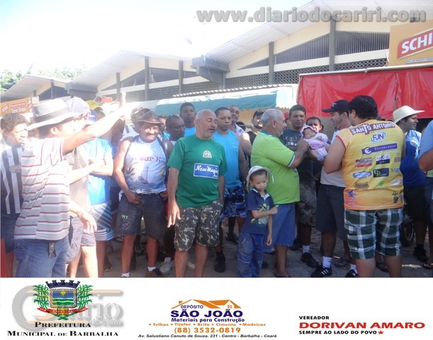 Por volta das 04h40min, desta sexta-feira, 15 de maio, os primeiros fogos de artifícios quebraram o silencio da madrugada anunciando, que, no largo do Mercado Central de Barbalha, já tinha carregadores do Pau da Bandeira de Santo Antônio, e a partir daquele momento começava a concentração para o corte da árvore que servirá de mastro para a bandeira do padroeiro da cidade. Por volta das 07h30min, o “Capitão” do Pau da Bandeira, Rildo Teles, com apoio na comunicação do companheiro Toni Sousa, usou a palavra falando da grande responsabilidade de todos que unidos na fé em Santo Antônio, tem para desde o corte até o hasteamento da bandeira do nosso padroeiro, bem, alertou que o angico será um desafio para ser trasladado nos ombros dos carregadores até o largo da Igreja Matriz, para no final da tarde e início da noite do domingo 31 de maio, se fazer o hasteamento do grande mastro com a bandeira de Santo Antônio. Em seguida se deu os preparativos para o cortejo tradicional dos carregadores saindo do Mercado Central para a Igreja Matriz de Santo Antônio onde o padre, Alencar, proferiu a bênção dos carregadores para o corte do pau da bandeira de Santo Antônio, no Sítio Flores. A comissão organizadora e os carregadores agradecem aos proprietários da mata pela doação do mastro de Santo Antônio. Logo após a bênção proferida pelo padre, Alencar, em caminhões, camionetas, carros de passeio e motos, grande cortejo seguiu para o Sítio Flores, local que se deu o corte do angico para o mastro da bandeira de Santo Antônio na festa de 2015. Silva Neto DIVULGUE SUA EMPRESA NA FESTA DE SANTO ANTONIO FALE COM A GENTE 9921 0469