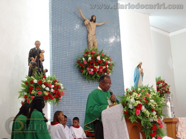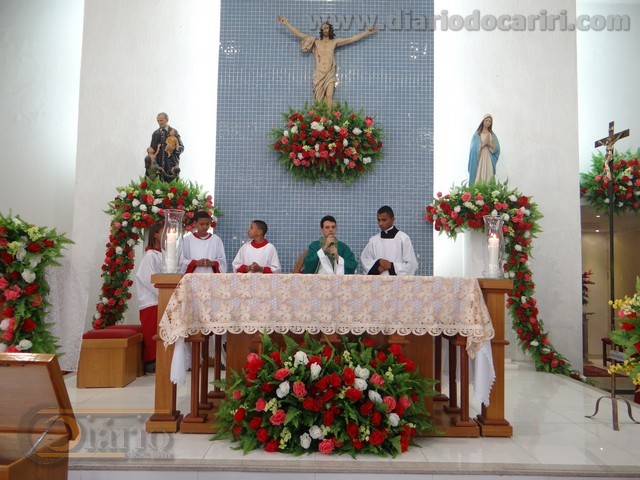 fotos:SilvaNeto:diariodocariri.com Padre Leoanrdo preside missa de abertura da festa Neste domingo, 13 de setembro, as 07h30 da manhã, o Pároco padre, Leonardo, presidiu a celebração da Santa Missa de abertura da festa religiosa de São Vicente de Paulo, com a Igreja Matriz lotada pela grande família paroquiana reunida na fé, oração, canto, reflexão e veneração festivamente ao grande evangelizador e defensor dos mais humildes. A bonita celebração marcou oficialmente a abertura da programação religiosa em louvou a São Vicente de Paulo, no período festivo haverá caminhada com a imagem do padroeiro visitando as famílias noiteiras residentes em várias localidades de Barbalha, ainda celebrações novenárias, missas, quermesses e movimentações sociais. A Igreja de São Vicente de Paulo situada no Bairro Alto da Alegria, estar recebendo melhoramentos na sua ampliação de infraestrutura, nas laterais as antigas portas de madeira estão dando lugar às novas portas em estruturas metálicas com vidros para oferecer mais claridade na parte interna, um novo piso em cerâmica brevemente será construído e outros melhoramentos estão sendo direcionados para oferecer melhores acomodações e mais conforto a família paroquiana vicentina. Para dar continuidade às obras de infraestrutura e melhoramentos diversos na Igreja Matriz, o padre, Leonardo e o Conselho Administrativo e Econômico estão realizando ações sociais com uma rifa, cuja renda somar-se-á as arrecadações de produtos alimentícios vendidos nas quermesses e também as doações dos barbalhenses, para a conclusão das obras de reforma da Igreja Matriz de São Vicente de Paulo. Silva Neto
