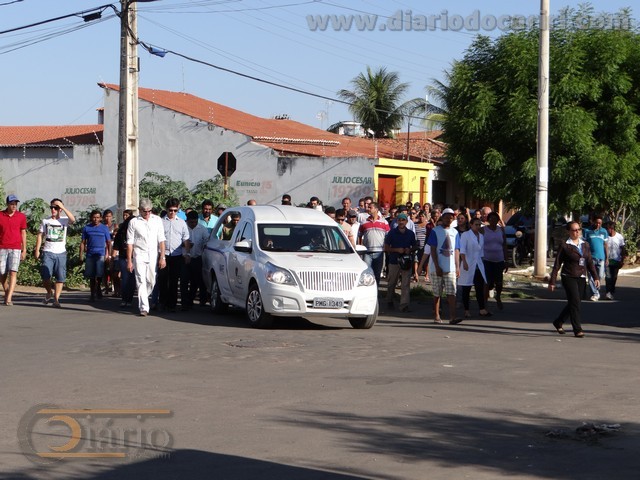 fotos:SilvaNeto/diariodocariri.com Sepultamento chega ao cemitério Santo Antônio No cemitério Santo Antônio de Barbalha, no final da tarde desta terça-feira, 27/10, foi sepultado o corpo do senhor João Xavier Teles, ou popularmente seu João Teles, que morreu aos 83 anos de idade, vale ressaltar que aos 82 anos a saúde complicou e o afastou do seu cotidiano de homem trabalhador, com o quadro de saúde agravado foram meses de acompanhamento médico, lutou muito pela vida, mas, Deus, o chamou para descansar em paz na morada celestial. Nos primeiros minutos da madrugada de hoje (27/10), seu João Xavier Teles, deixou a família e amigos para viver na eternidade, partiu com o dever cumprido como cidadão, deixando para a sua prole bons exemplos como pai, como amigo verdadeiro e prestativo, em vida até quando teve condição física trabalhou para educar os filhos e as filhas: Anunciada Teles Coelho; Expedito Rildo Cardoso Xavier Teles; Luciene Xavier Teles; Rivelino Cardoso Xavier Teles; Damião Cardoso Xavier Teles e Antônio Cardoso. As 16h00, na Igreja de Nossa Senhora do Rosário foi celebra missa de corpo presente, presidida pelo padre Nino Grangeiro, o qual na homilia foi muito enfático ao discernir os designos de Deus como Pai misericordioso, bondoso e amável, misericordioso porque pelo seu filho Jesus foram perdoados os nossos pecados, bondoso porque nos ama em todas as nossa fraquezas, e amável porque seu coração é cheio de amor por nós, por isso temos a certeza que o nosso irmão João Teles, está no coração de Deus, e pelo seu filho Jesus, não pedimos sua intercessão para que toda a família do seu João Teles seja forte nesse momento de angustia, que Deus fortaleça todos os seus familiares encontrando na morte o sentimento da vida eterna. Antes o encerramento da missa, o celebrante, padre Nino, com água benta fez a recomendação do corpo pedindo a Deus receber o seu filho João Teles para repousar livremente do pecado. Ao final da celebração e das homenagens prestadas na Igreja de Nossa Senhora do Rosário, o cortejo fúnebre seguiu para o cemitério municipal Santo Antônio de Barbalha, onde por volta das 17h40min, o esquife foi colocado no jazigo da família. No decorrer do dia e, principalmente na celebração da missa de corpo presente e no sepultamento, a família Teles recebeu a solidariedade de muitos barbalhenses e caririenses, registrando a presença de médicos amigos da família, de profissionais liberais, de lideranças comunitárias, de políticos de Barbalha e de municípios circunvizinhos, que vieram abraçar o vereador Rildo Teles, que agora descansa em paz na casa de Deus. No traslado da urna mortuária da Igreja de Nossa Senhora do Rosário para o cemitério, os amigos dispensaram o carro da funerária para carregar o esquife nos ombros Silva Neto