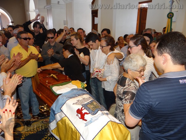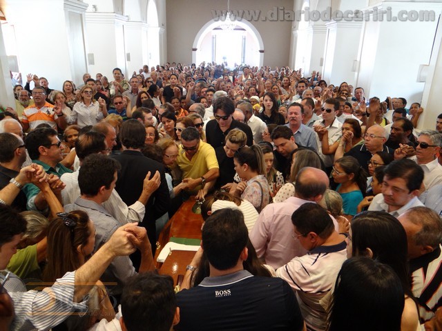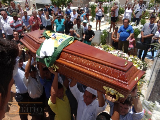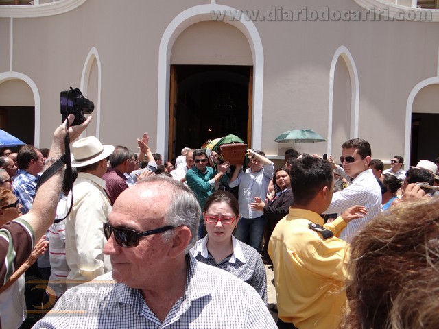Fotos:SilvaNeto/diariodocariri.com barbalhenses trasladam a urna mortuária nos ombros Na Igreja de Nossa Senhora do Rosário, pela manhã desta quinta-feira, 08 de outubro, foi celebrada missa de corpo presente pela passagem da vida terrestre para a morada eterna do Dr. José Mauro Castelo Branco Sampaio (Dr. Mauro Sampaio), gente de todas as classes profissionais, amigos e familiares participaram da santa celebração presidida pelo padre Alencar e concelebrada pelo padre Josias. Momentos de muita tristeza, sentimentos de perda, choro dos familiares, saudades para todos os amigos, abraços e palavras de conforto, palavras de esperança, boas lembranças citadas, as realizações de um grande homem, os marcos históricos que ficam na memória do povo do Cariri, o legado de um dos maiores políticos com ética e moral inabalável aonde representava o povo do Cariri e do Ceará. Foi nesse conjunto de manifestações dos oradores amigos do Dr. Mauro Sampaio, que elevou o clima de muita comoção entre centenas de barbalhenses, centenas de caririenses e centenas de cearenses, nas despedidas um homem que doou sua vida de trabalho para o povo, que doou sua profissão de médico aos mais pobres, e doou o sangue de homem público para o desenvolvimento e o progresso do Juazeiro cidade que a adotou como mãe e Juazeiro do Norte em reconhecimento o adotou como filho ilustre por Título de Cidadão Juazeirense. Muitas homenagens póstumas foram prestadas por políticos e amigos dentre os quais: José Leite Gonçalves Cruz – Prefeito Municipal de Barbalha João Hilário Coelho Correia – Ex-Prefeito de Barbalha José Arnon Bezerra de Menezes – Deputado Federal Egberto Santos – Representando a Fundação Otília Correia Saraiva (Hospital Santo Antônio e Hospital do Coração do Cariri Antônio Ernandes de Freitas – Representando o Hospital Maternidade São Vicente de Paulo E outras pessoas que prestaram também suas homenagens. Depois das homenagens na Igreja de Nossa Senhora do Rosário, se deu o cortejo fúnebre até o cemitério Santo Antônio, onde repousam os restos mortais dos pais e familiares outros do Dr. Mauro Sampaio. No percurso da Igreja de Nossa Senhora do Rosário para o cemitério os barbalhenses dispensaram o carro que faz o traslado do corpo, a urna mortuária foi erguida em frente à igreja e levada nos ombros dos barbalhenses. As Bandas de Músicas: Filarmônica São José e Os Batutas do Rosário, acompanharam tocando vários dobrados alegrando a viagem para a morada celestial do médico e amigo do povo, Dr. Mauro Sampaio. No cemitério Santo Antônio, o esquife foi colocado no jazigo por volta das 12h00, momento de muita emoção e comoção, lágrimas, abraços, palavra valorosas de amor e carinho por muitos amigos de Mauro Sampaio elevando o espírito da família de que foi cumprida a sua missão na terra. No momento do sepultamento aplausos ecoaram no último adeus ao maior líder político dos últimos tempos para Juazeiro do Norte, para o Cariri e para o Ceará. O homem em termos de matéria humana se foi, mas ficou a sua história na memória do seu povo. Dr. Mauro Sampaio descanse em PAZ! Silva Neto