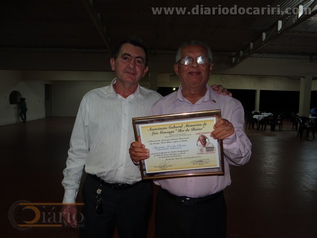 fotos:SilvaNeto/diariodocariri.com Barbalhenses homenageados com a Comenda "Luiz Gonzaga "Rei do Baião" A noite dessa sexta-feira, 11 de dezembro, nas dependências da AABB – Associação Atlética Banco do Brasil de Juazeiro do Norte, o Cariri se encontrou em festa comemorativa aos 103 anos de história de Luiz Gonzaga do Nascimento “Rei do Baião”, com J. Farias e Joãozinho do Exu tocando o melhor do repertório gravado por Luiz Gonzaga. A festa faz referência a memória de Luiz Gonzaga, sendo promovida pela Associação Cultural Memórias de Luiz Gonzaga “Rei do Baião”, na direção geral do radialista forrozeiro Francisco Pereira das Chagas (Fran Pereira) “Senador do Sertão”, a organização e a realização conta com apoio incondicional de grandes gonzaguianos Romão França e George Pereira, o evento agregou a sociedade caririense com a entrega da comenda Luiz Gonzaga “Rei do Baião”. A Comenda Luiz Gonzaga “Rei do Baião” foi entregue para Club de Serviços, Comércio, Indústria, Bancários, Médicos, Empresários, Imprensa, Políticos (deputado, prefeito e ex-prefeito, vereadores e outros segmentos representativos da sociedade do Cariri. Dentre os municípios com representações Barbalha estava presente com várias personalidades. Homenageados de Barbalha: Márcio de Sousa Freitas – Presidente do Rotary Club Ademar de Sousa – Rotary Club Augustinho José dos Santos – Rotary Club Silva Neto – Rotary Clube George Pereira – Rotary Clube Daniel de Sá Barreto Cordeiro – Presidente da Câmara Municipal de Barbalha Expedito Rildo Cardoso Xavier Teles – Vereador João Flávio Cruz Sampaio – Vereador José Rodrigues Neto – Empresário Lojista Silva Neto
