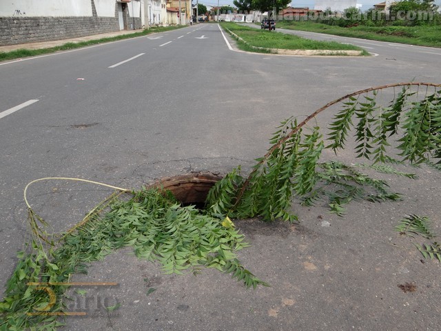Nesta terça-feira, dia 02 de Fevereiro, populares passaram informações para o nosso trabalho de reportagem, que, na Avenida do Contorno ou Avenida 17 de Agosto com a Rua Padre Carlos Vieira, Bairro Cirolandia em Barbalha, tem uma galeria do saneamento básico sem a tampa, o que estar colocando em risco o tráfego de veículos. Hoje a Avenida do Contorno é a principal rodovia urbana ligando a Chapada do Araripe com o Triângulo Crajubar na Região Sul do Ceará, diariamente, e principalmente, durante o dia é muito grande o fluxo de veículos, pequenos, médios e de grande porte com cargas para o abastecimento do comércio das três cidades Barbalha, Juazeiro do Norte e Crato. Com objetivo de alertar os motoristas sobre o perigo da galeria do saneamento básico sem a tampa, populares colocaram galhos de árvores no local. Motoristas e condutores de motos precisam redobrar a atenção para evitar acidente na Avenida do Contorno. Em nome dos moradores mais próximos ao problema e até mesmo de motoristas locais, se pede a CAGECE – Companhia de Água e Esgoto do Ceará escritório de Barbalha e também o regional, dar solução ao citato problema o mais rápido possível. Silva Neto
