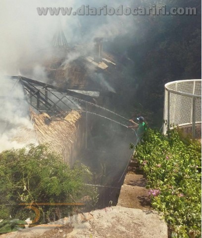 Incêndio destrói palhoça do restaurante do Arajara Park