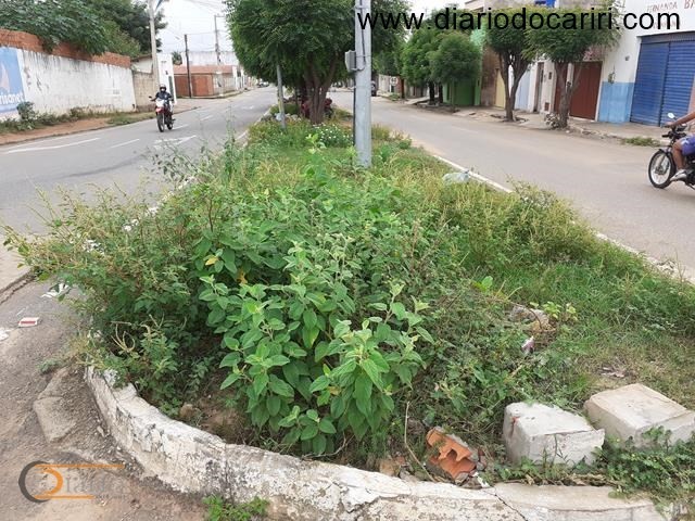 Mato toma de conta de canteiros da Avenida 17 de Agosto, via pública de grande fluxo de veículos de outros municípios ligando com o Cariri