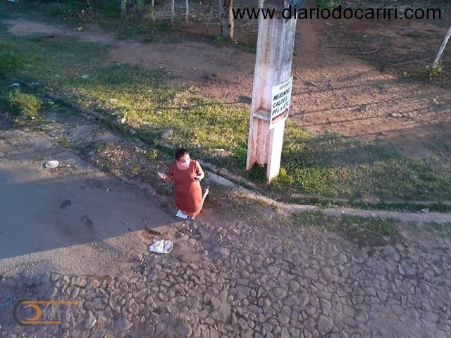 Na Rua Zuca Sampaio devota se ajoelha agradecendo as bênçãos de Santo Antônio