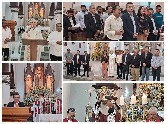 Nesta quinta-feira (5), a 6ª Trezena em louvor a Santo Antônio, foi noitária a Câmara Municipal de Barbalha, vereadores, funcionários e devotos lotaram a matriz em mais um dia de glória a Deus e louvores ao santo casamenteiro. Dos 15 vereadores da Câmara Municipal de Barbalha, 9 estiveram presentes na igreja: Dorivan Amaro dos Santos, Cícera Bertulino, Marcelo Júnior, Odair José de Matos, Antônio Ferreira, Joanes Sampaio, Alex Saraiva, Marcus Alencar e Ilanio Sampaio.