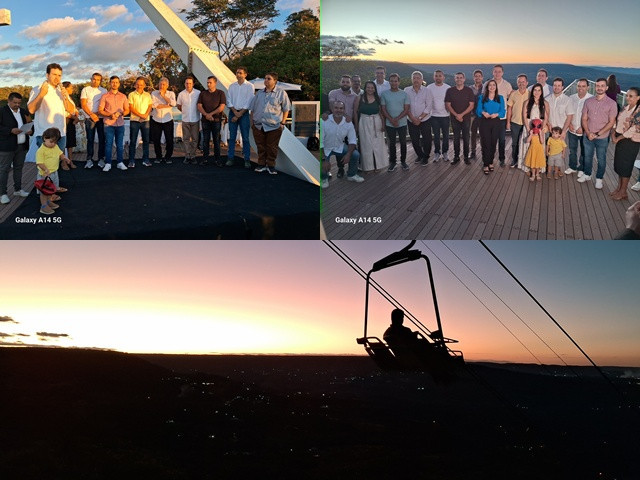 No topo do Mirante do Teleférico do Caldas, os prefeitos e secretários municipais de turismo fizeram elogios a visão panorâmica do grande Vale do Cariri com o presente da natureza do pé-de-serra da Chapada do Araripe deslumbrante com o pôr do sol.