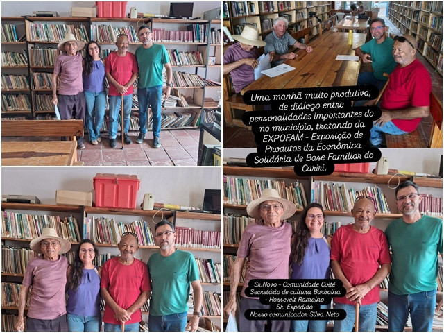 Nessa quinta-feira (11), na biblioteca pública Padre Agostinho Mascarenhas no Casarão da Cultura, o Secretário de Cultura de Barbalha, Hoosevelt Ramalho recebeu a Comissão Organizadora da XVIII EXPOFAM – Exposição de Produtos da Economia Solidária de Base Familiar do Cariri, que será realizada nos dias 3, 4 e 5 de outubro no Parque de Exposição Pedro Felício Cavalcante no Crato.