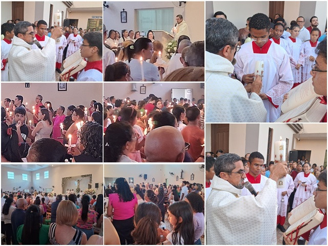 Sábado de Aleluia celebrante acende o Círio Pascal e fiéis acendem velas nas igrejas e capelas de Barbalha