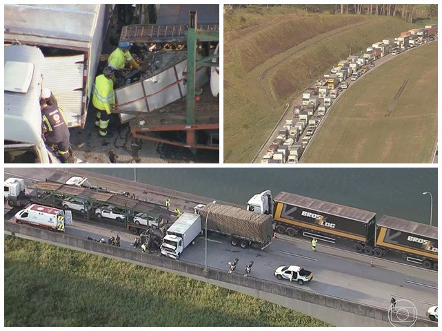 Carreta, van, caminhão e outros carros se envolveram no acidente