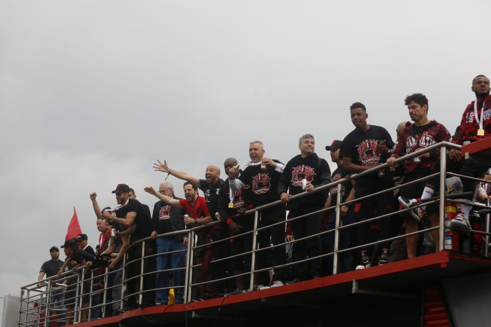 Com a taça da Copa do Brasil, delegação do Athletico foi para um trio elétrico — Foto: Felipe Rosa/Gazeta do Povo