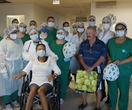 O Hospital Regional do Cariri em Juazeiro do Norte, no dia 13 de março recebeu a primeira paciente com suspeita de coronavírus, nos exames o diagnostico foi positivo, as devidas precauções foram adotadas conforme as recomendações ficando no isolamento e venceu o período crítico, e depois de 24 dias de internamento recebeu alta nesta sexta-feira (10), alta hospitalar que foi comemorada com o seu esposo e com a equipe médica, todos felizes com a vitória da senhora Isabel de Fátima, 63 anos.