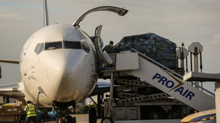Um avião com uma carga de 7,5 toneladas de Equipamentos de Proteção Individual (EPIs) e 4 respiradores pousou em Fortaleza na tarde deste sábado (9). Os insumos vão ser utilizados para auxiliar os profissionais de saúde que trabalham na linha de frente no combate ao enfrentamento ao novo coronavírus. Além do material adquirido no exterior, a prefeitura comprou da industria local outras ferramentas de trabalho a exemplo dos protetores faciais e aventais impermeáveis.