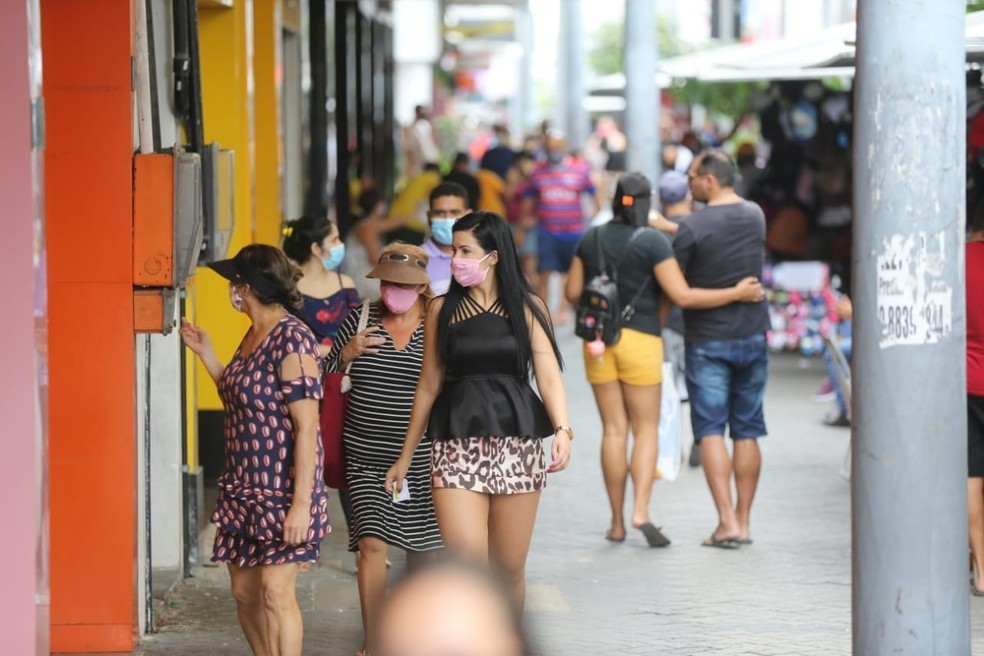 Circulação de pessoas em ruas de Fortaleza no 1º sábado de abertura em quase três meses — Foto: Helene Santos/SVM