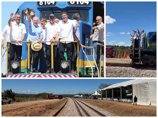 O presidente Luiz Inácio Lula da Silva visitou nesta sexta-feira (18) um dos trechos já finalizados da ferrovia Transnordestina no Ceará, na região de Missão Velha, interior do estado. Ele anunciou ainda um investimento de mais R$ 1,4 bilhão para a ferrovia.