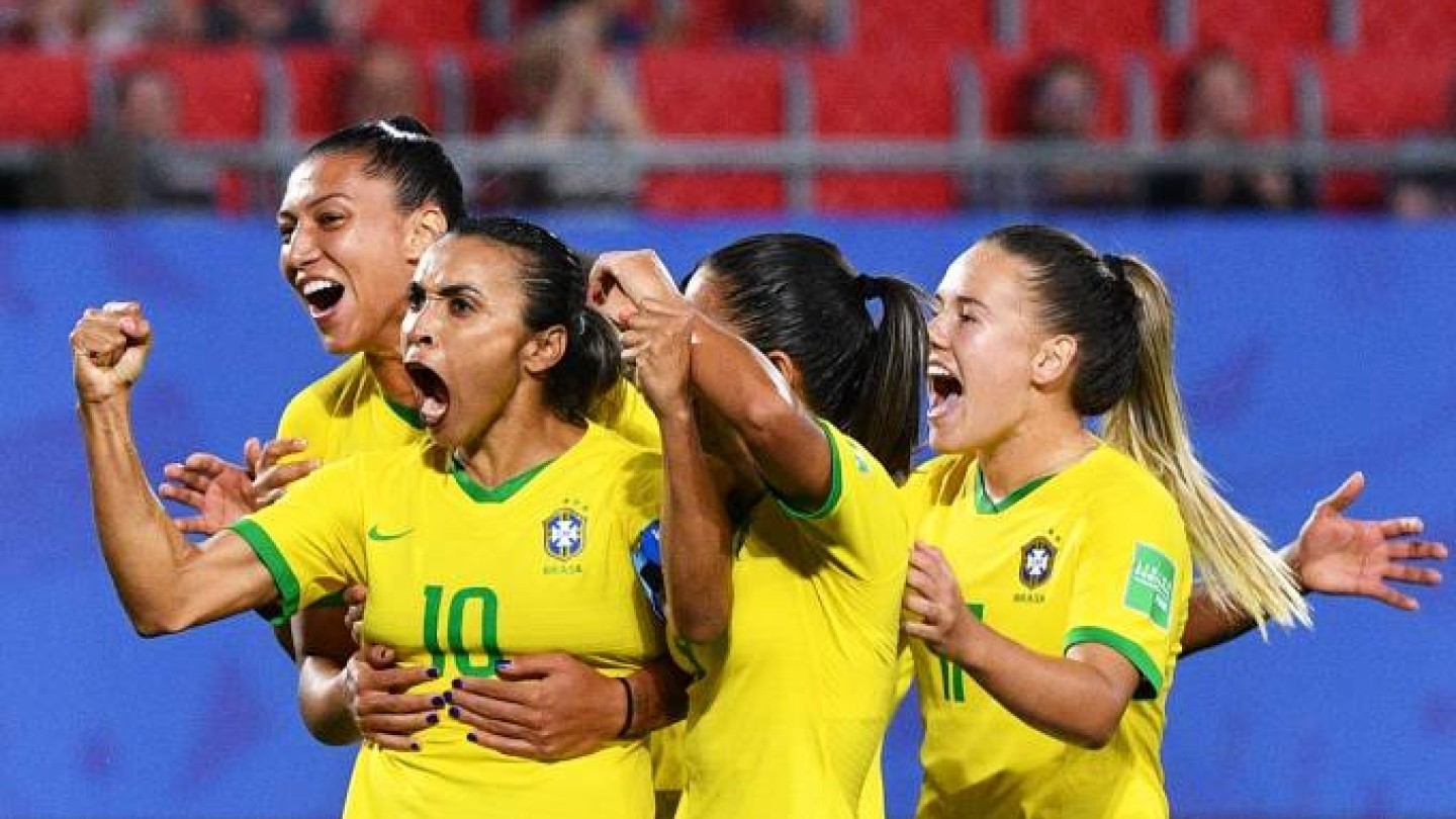 Marta comemorando gol durante a Copa do Mundo da França, em 2019.