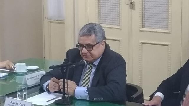 Rubens Lopes, presidente da Ferj, compareceu à audiência pública nesta segunda na Alerj — Foto: Vicente Seda
