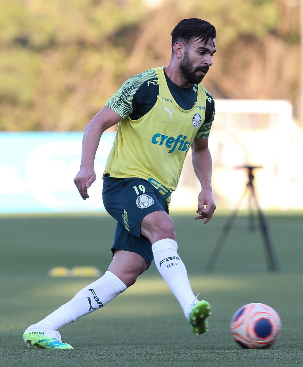 Bruno Henrique durante o treino com bola desta quinta — Foto: Cesar Greco\ Ag. Palmeiras
