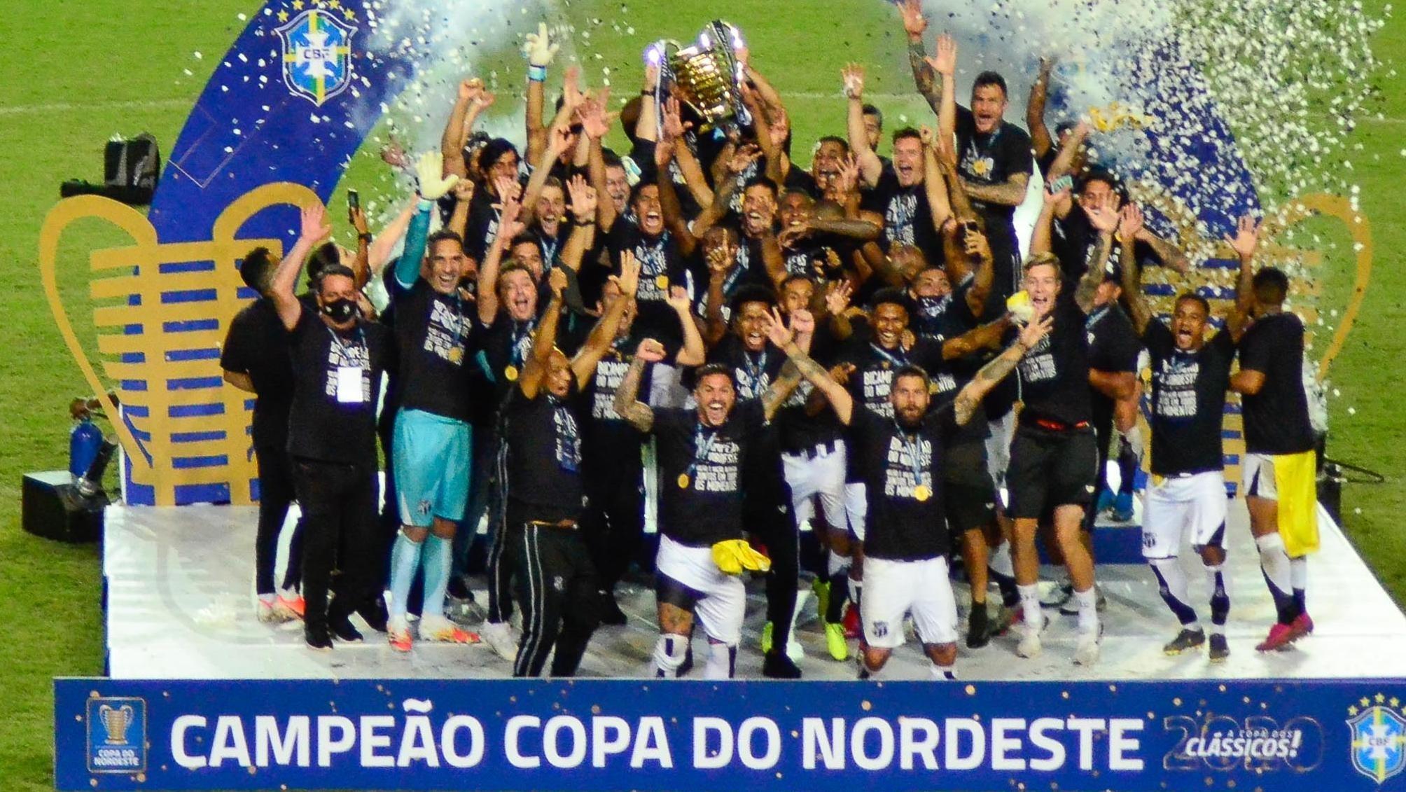 Legenda: Ceará levanta a taça de bicampeão da Copa do Nordeste - Foto: Foto: JHONY PINHO/AGIF - AGÊNCIA DE FOTOGRAFIA/ESTADÃO CONTEÚDO