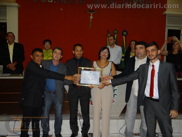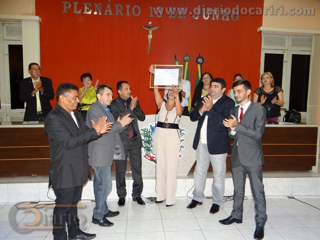 Vereadores: Esq/Dir Dorivan, Daniel, Odair Flávio e VeVé. Sônia ao meio. Foto:SilvaNeto/diariodocariri.com