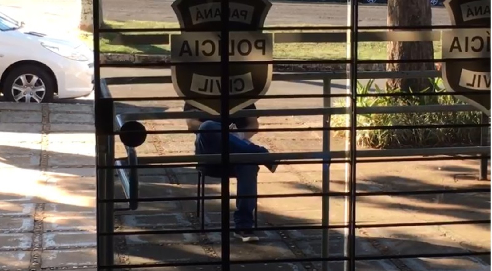 Homem ficou detido do lado de fora de delegacia para evitar a contaminação dos presos e funcionários do local, em Paranavaí — Foto: Reprodução/RPC