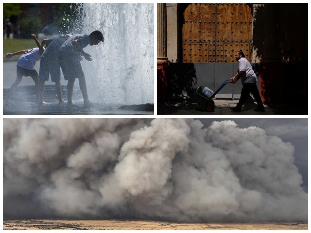 Na Espanha, além do calor extremo — com registros de até 46°C em Huelva —, o país enfrenta incêndios florestais. Ao menos duas pessoas morreram em decorrência do fogo em Lérida, na Catalunha. O incêndio forçou o confinamento de 14 mil pessoas. Uma criança de dois anos também morreu após ser deixada por horas dentro de um carro estacionado sob o sol, em Tarragona.