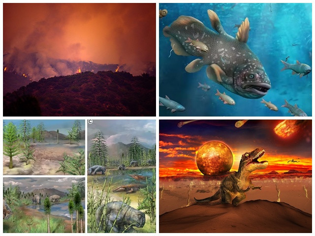 A história da evolução da vida na Terra não foi gradual nem contínua. Ao longo de centenas de milhões de anos, ocorreram grandes catástrofes que provocaram o desaparecimento rápido e global de muitas espécies.