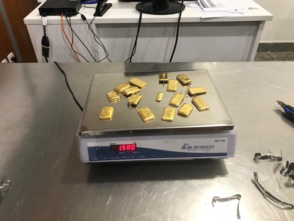 O flagrante aconteceu durante a inspeção de bagagens por meio do aparelho de raio X, quando foi detectada a presença das barras de ouro.