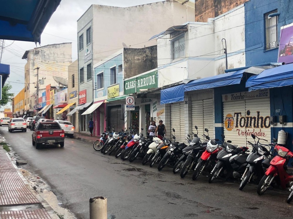 Algumas lojas ficaram fechadas no Centro de Sobral após manifestação de homens encapuzados em veículos policiais — Foto: Maristela Gláucia/SVM