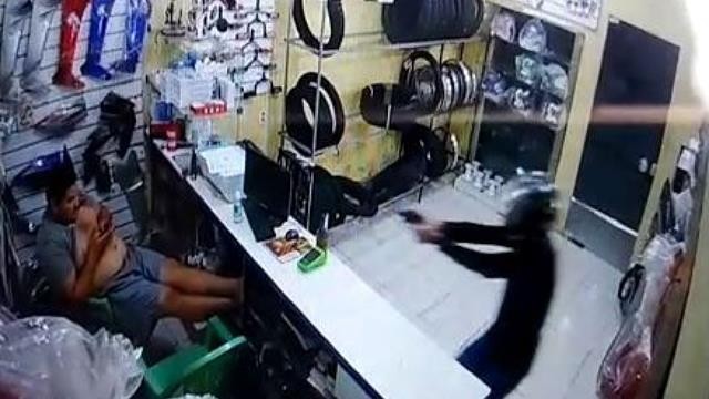 Proprietário de oficina é morto a tiros por motociclista; ação foi flagrada por câmeras de segurança. Foto: Reprodução