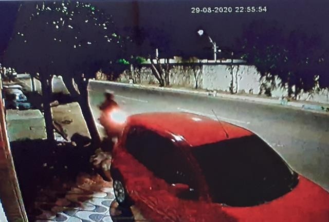 Nessa imagem a câmera pega o jovem se aproximando da traseira do carro