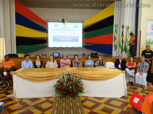Autoridades e convidados formaram a Mesa Diretora foto:silvaneto/diariodocariri.com A STDS - Secretaria do Trabalho e Desenvolvimento Social de Barbalha, nesta quinta-feira 18 de agosto, realizou a VII Conferência Municipal de Assistência Social 2015, com o LEMA: “Pacto Republicano no SUAS rumo 2026: O SUAS que temos e o SUAS que queremos”, participação de autoridades municipais executivas e legislativas, representações dos diversos segmentos da sociedade e representação da 1ª Vara da Comarca de Barbalha. O evento transcorreu das 08 às 17 horas, no Salão Paroquial Santo Antônio a Rua da Matriz. Mesa Diretora da VII Conferencia composta pelas personalidades: Maria Solange Sabino Filgueira (Presidente do Conselho Municipal de Assistência Social de Barbalha; José Leite Gonçalves Cruz – Prefeito Municipal; Maria Betilde Sampaio Correia – Vice-Prefeita; Maria Tereza Amora Cruz – Secretária do Trabalho e Desenvolvimento Social; Cristiane Sampaio – Secretária de Educação do Município; Desirée de Sá Barreto Diaz Gino – Secretária de Saúde do Município; Everton de Sousa Garcia Siqueira (Vevé) vereador representando a Câmara Municipal; Cícero Ricardo Cavalcante da Silva – Da 1ª Vara da Comarca de Barbalha representando a Juíza Dra. Alexsandra Batista Brito; Antônio Marcos da Silva – Presidente do Conselho de Pessoas Deficientes Físicos de Barbalha; Antônio de Luna – Secretário de Cultura e Turismo de Barbalha, Isabel Cristina Bastos Nóbrega Cruz – Secretária de Governo e Primeira Dama do Município. Com a Mesa Diretora apostos a solenidade da Conferência, houve a execução do Hino Nacional e Canta Barbalha com a Banda de Música “Os Batutas do Rosário”. Posteriormente a palavra das autoridades: Zé Leite – Prefeito Municipal; Betilde Correia – Vice-Prefeita; Cícero Ricardo Cavalcante da Silva – Representante da 1ª Vara da Comarca de Barbalha; Maria Tereza Amora Cruz – Secretária do Trabalho e Desenvolvimento de Barbalha, e Maria Solange Sabino Filgueira (Presidente do Conselho Municipal de Assistência Social de Barbalha. Em seguida a Mesa Diretora das autoridades se desfez para acompanhar as apresentações dos grupos artísticas e folclóricas categoria infantil da rede de ensino municipal sob a direção e coordenação da educadora Maria Celene Sá de Queiroz. Logo depois se deu a leitura do Estatuto que rege a Ação Social de Barbalha, pontuando os pleitos “O SUAS que temos e o SUAS que queremos para o Ano 2026.” Passando adiante conforme o plano de trabalho, o grande público presente foi dividido nos eixos temáticos focando os assuntos que estão nos anseios da sociedade barbalhense. Os trabalhos da VII Conferência Municipal de Assistência Social de Barbalha transcorreram das 08 as 17h00, com o Salão Paroquial Santo Antonio lotado pelo público. Os eixos temáticos foram discutidos, as propostas e sugestões apresentadas e aprovadas pela assembléia geral, serão compactadas como a Carta da Conferência da Assistência Social de Barbalha e lançadas para fazer parte das discussões da Conferência Estadual em Fortaleza e da Conferência Nacional em Brasília. Não há dúvida que o evento foi grande e valioso para os destinos de Barbalha nos próximos 10 anos, a sociedade barbalhense foi muito bem representada pelos diversos segmentos presentes a VII Conferência Municipal de Assistência Social com apoio da Gestão Pública, Zé Leite e Betilde Correia. Silva Neto