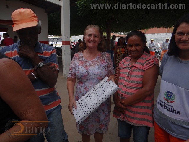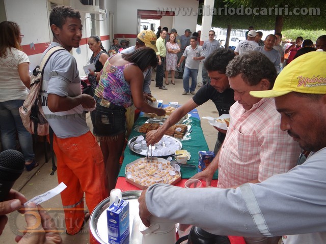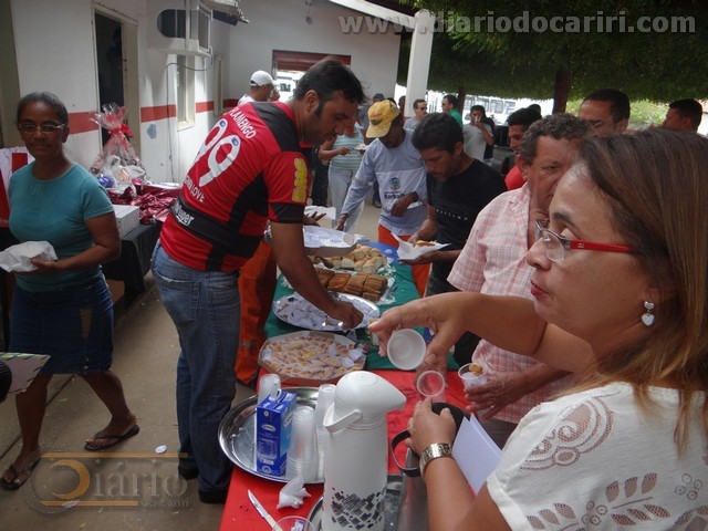 Confraternização natalina dos garis e Demutran Fotos:SilvaNeto/diariodocariri.com Na manhã desta quarta-feira, 23 de dezembro, no pátio interno da Secretaria de Infraestrutura e Obras de Barbalha, em clima de Natal o prefeito Zé Leite, a secretária do Meio Ambiente Polyana Silva Coimbra Cruz também respondendo pela pasta de Obras, e o Diretor do Demutran de Barbalha, Roberto Grangeiro, se confraternizaram com as categorias garis e Agentes de Transito. Zé Leite, Polyana Cruz e Roberto Grangeiro fizeram uso da palavra para agradecer o trabalho dos garis e dos Agentes de Transito no decorrer do ano de 2015, destacando o empenho, a determinação e o compromisso com as suas tarefas atribuídas e realizadas a contento e, ao mesmo tempo no foco do período natalino as três autoridades desejaram feliz Natal e Venturoso Ano Novo. O prefeito de Barbalha, Zé Leite, fez breve explanação da situação financeiras do país, como também da atual complicada vida política brasileira partindo do Congresso Nacional, no aspecto financeiro os municípios foram afetados com perdas de receitas consideráveis para as finanças dos municípios, principalmente, os mais pobres, isso obrigou aos gestores municipais economizar muito e a gastar menos, nessa fórmula agente teve que trabalhar dando prioridade à folha de pagamento do funcionalismo público juntamente com outras áreas consideradas importantes no atendimento a população. Zé Leite lamentou a grave no setor da Saúde Pública, não queremos isso para o povo de Barbalha, quem tem compromisso com o povo estar trabalhando, outra parte estar recebendo sem trabalhar, diante a situação emperrada a gente vai buscar uma saída através da Justiça, citou o prefeito. Ainda no campo da saúde, o Chefe do Executivo Municipal informou da reunião com os secretários municipais e os núcleos de Vigilância Sanitária e Endemias no sentido de enfrentamento ao mosquito transmissor da dengue e, solicitou dos garis todo apoio possível para combater o Aedes aegypti. O gestor municipal de Barbalha citou que no próximo ano já tem cerca de 12 obras em andamento para serem inauguradas em 2016. A confraternização natalina dos garis e dos Agentes do Demutran terminou com um coquetel e sorteio de presentes entre os que estavam presentes. Silva Neto