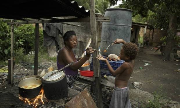 Como alto preço do gás, Simone, de 49 anos, é obrigada a retroceder à lenha paracozinhar no quintal de casa Foto: Márcia Foletto / Agência O Globo