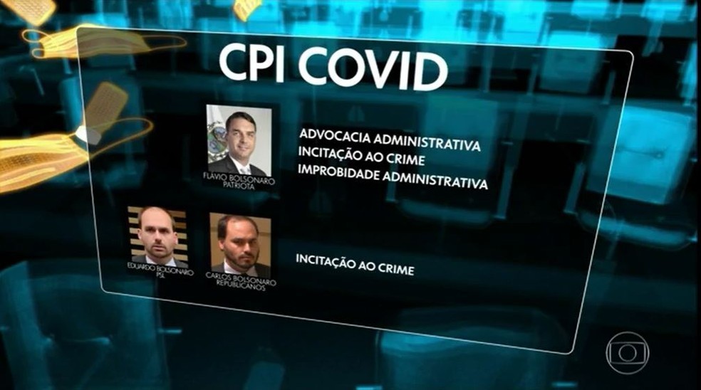 Relator da CPI também deve pedir o indiciamento de três filhos do presidente Jair Bolsonaro. — Foto: Reprodução/TV Globo