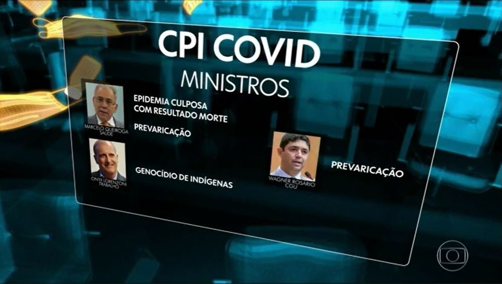 Relatório final da CPI da Covid deve pedir o indiciamento de pessoas apontadas como integrantes do gabinete paralelo. — Foto: Reprodução/TV Globo