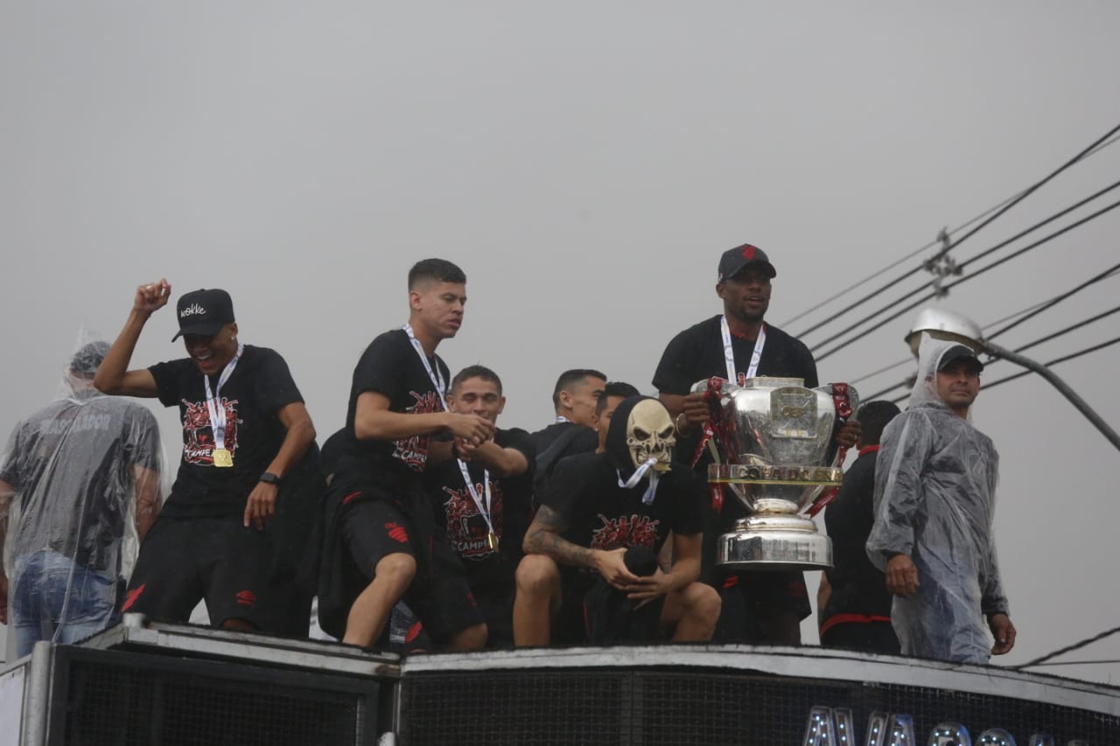 Com a taça da Copa do Brasil, delegação do Athletico foi para um trio elétrico — Foto: Felipe Rosa/Gazeta do Povo