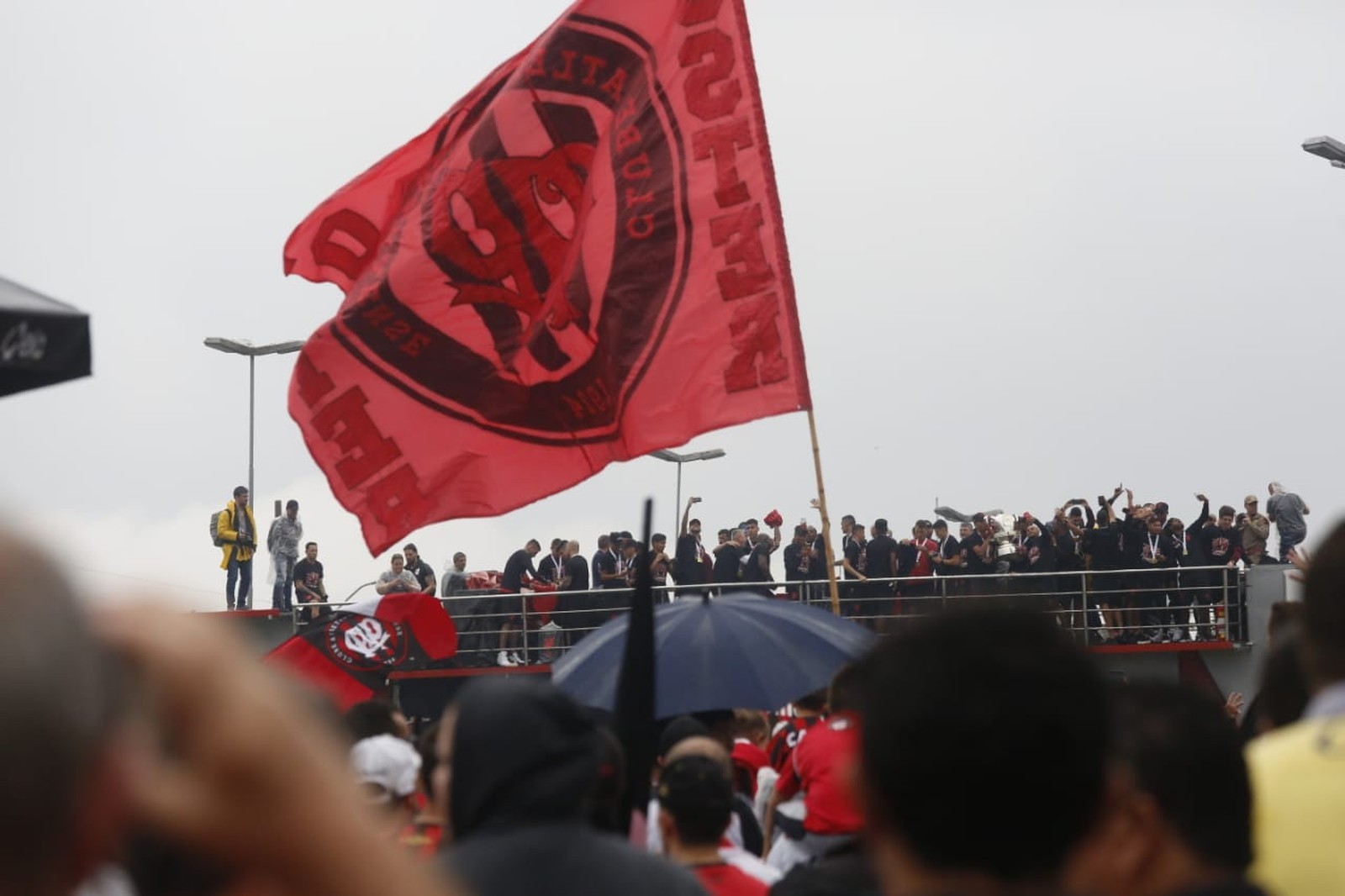 Com a taça da Copa do Brasil, delegação do Athletico foi para um trio elétrico — Foto: Felipe Rosa/Gazeta do Povo