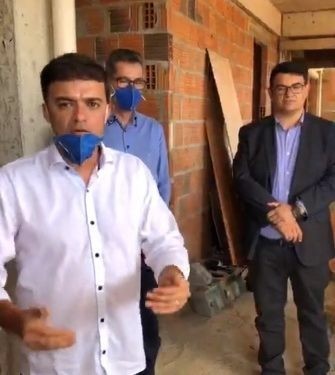 Deputado estadual Fernando Santana após reunião acompanhado por diretores do hospital visitou obras da oncopediatria. (Imagem enviada por internauta colaborador)