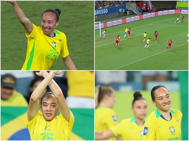 Com menos de dois minutos, o Brasil abriu o placar. Ary Borges lançou, Kerolin finalizou, a bola desviou na defesa, e Aline Gomes aproveitou a sobra para marcar.