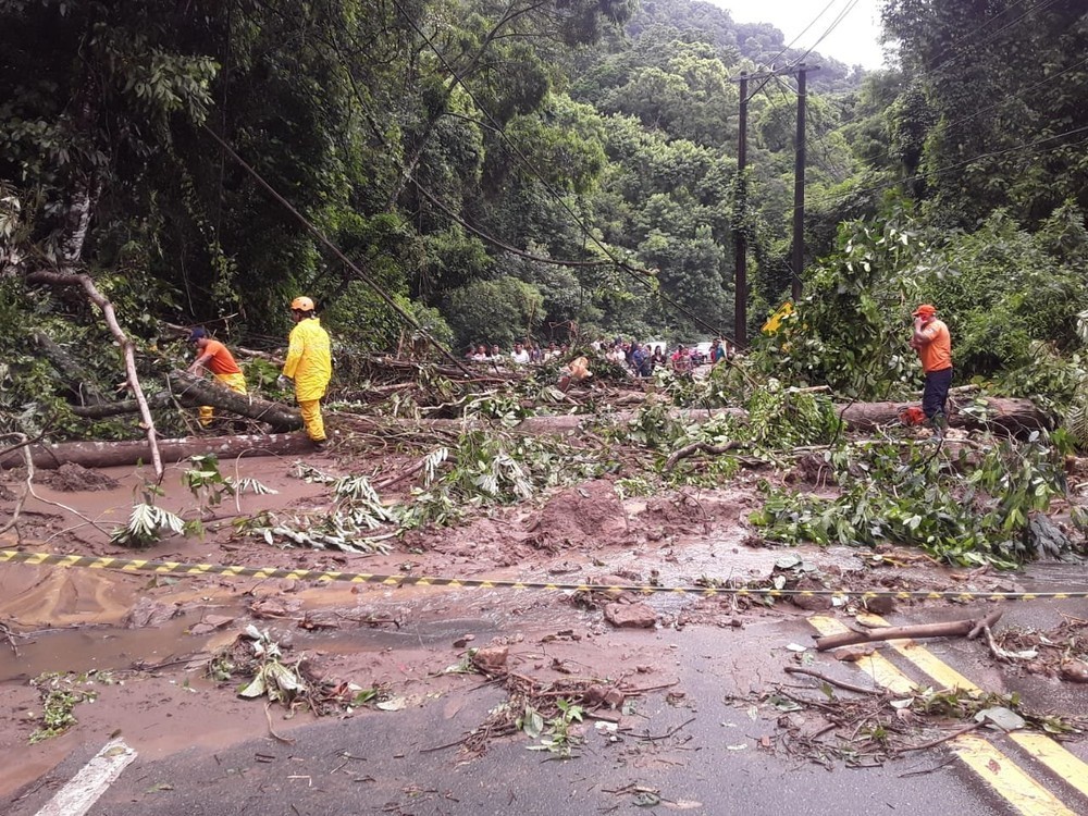 Às 12h40, a rodovia Rio-Santos tinha cinco pontos com registros de ocorrências. A rodovia estava totalmente interditada na região de Guaecá e Toque-Toque grande.
