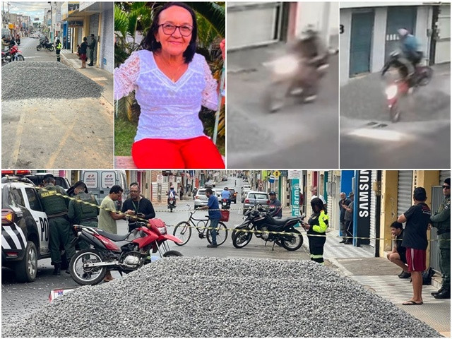 Uma idosa morreu ao cair de uma motocicleta que bateu em um monte brita na Rua São Paulo, no Centro de Juazeiro do Norte, no Cariri cearense, na manhã desta terça-feira (30). Uma câmera de segurança flagrou o momento da colisão.