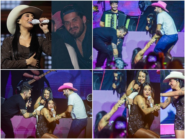 Ana Castela, de 21 anos, acompanhada de Zé Felipe, de 27 anos, em show na Suhai Music Hall, em São Paulo, na noite do último sábado (11), foi acidentalmente derrubada no palco durante apresentação. A Boiadeira convidou o influenciador Odorico Reis ao palco, e, após ter se despedido, a cantora chamou ele novamente ao espaço. Nesse momento, acabaram se trombando, fazendo com que Ana fosse direto ao chão.