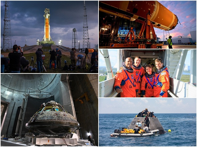 Quatro tripulantes estão viajando dentro da cápsula Orion, impulsionada pelo Space Launch Sys-tem - SLS (em português, Sistema de Lançamento Espacial), o foguete mais poderoso já construído pela agência espacial americana.